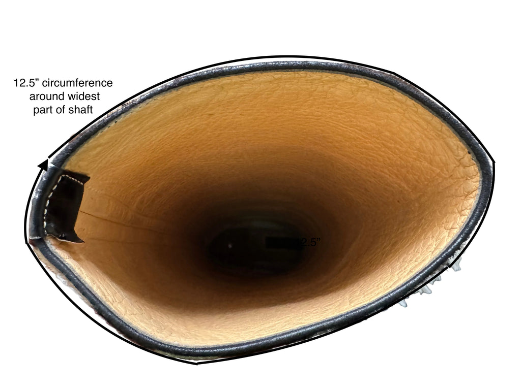 See the last two pictures for all measurements. Note that the circumference and height of the shaft are important regarding fit. These boots will best fit someone with a longer leg.