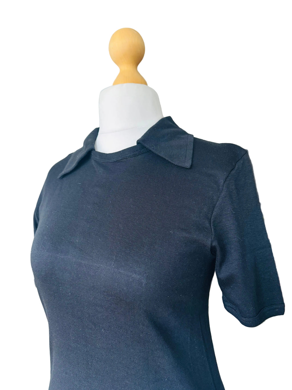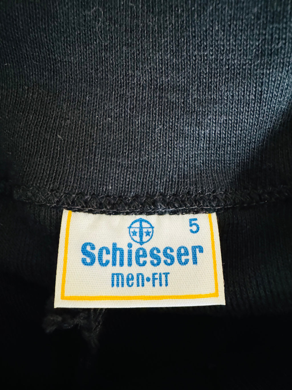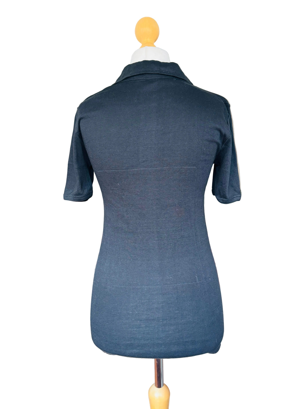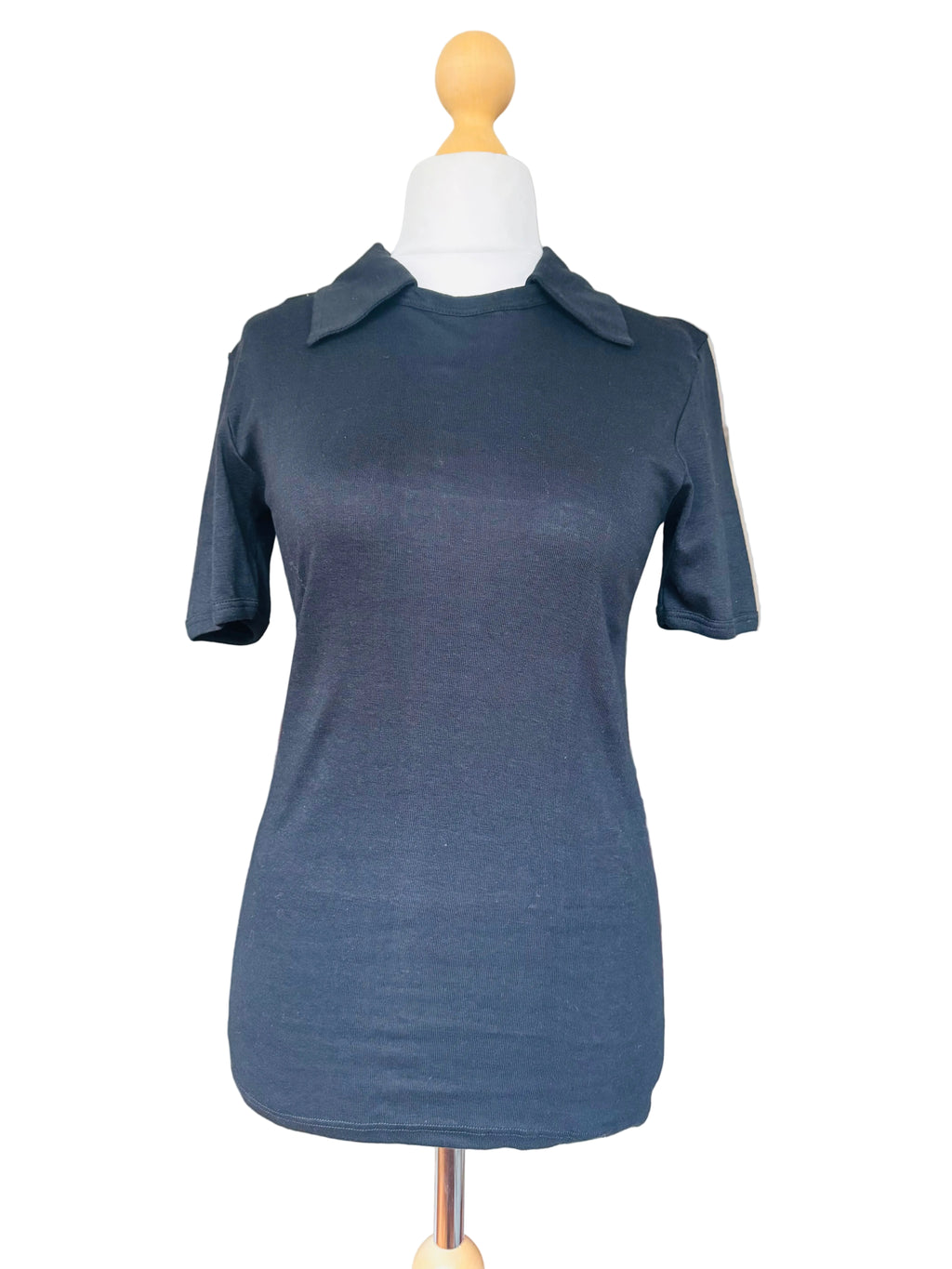 1970s black Schiesser collared knit short-sleeved t-shirt. 100% cotton jersey.
