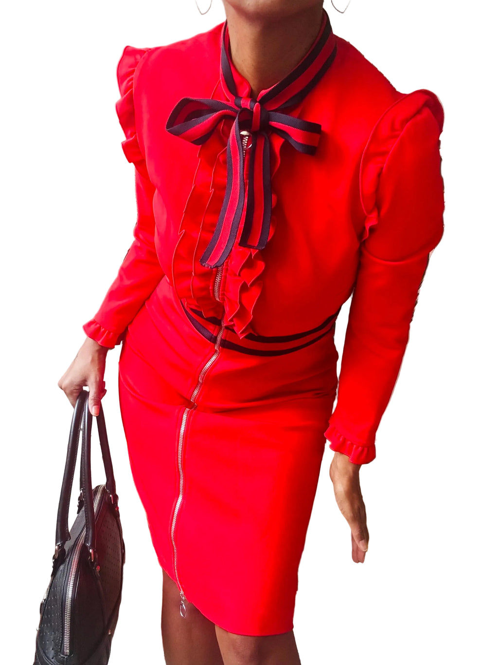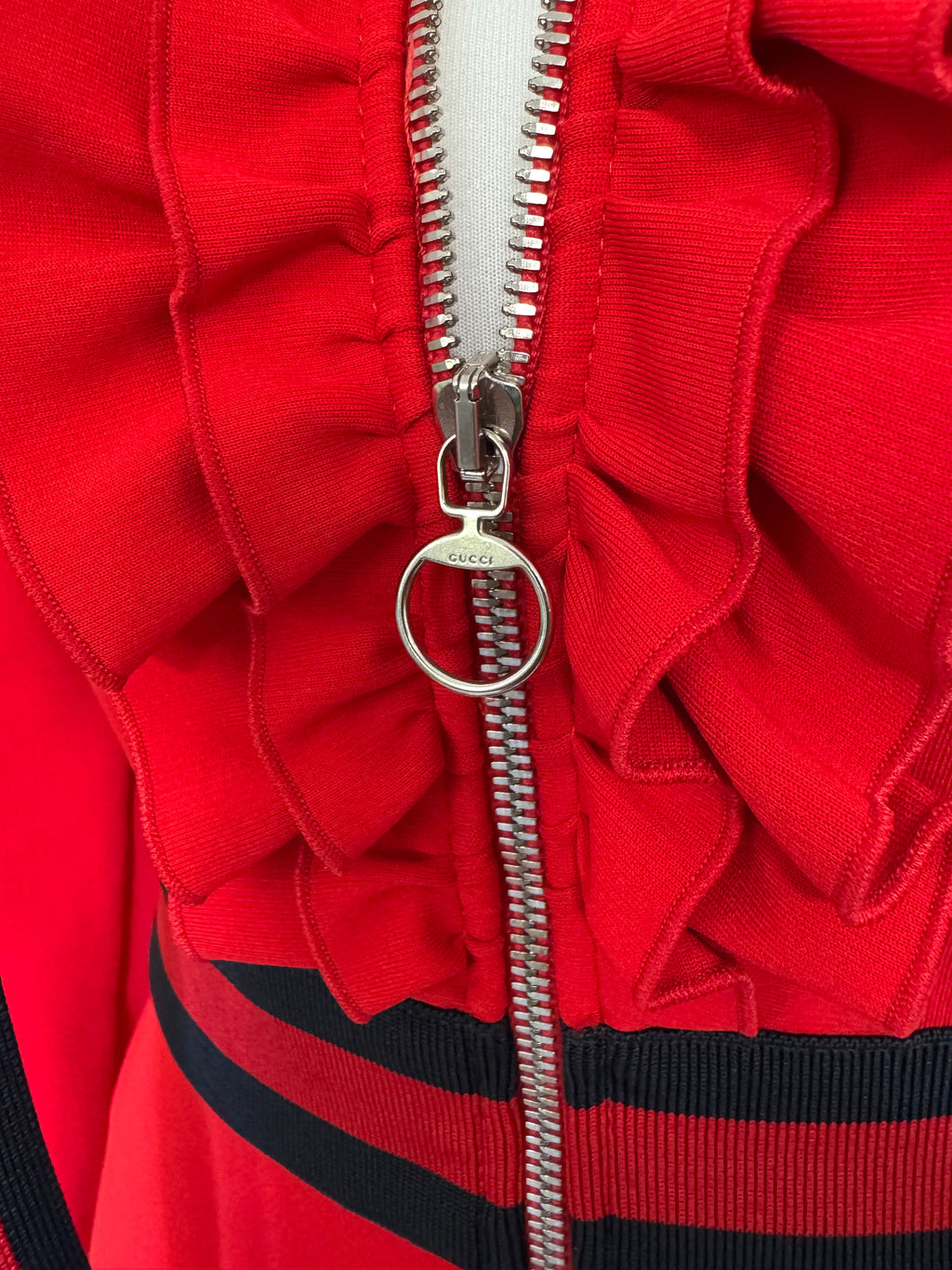 Gucci Red Zip Front Jersey Dress w/Bow and Ruffle Details